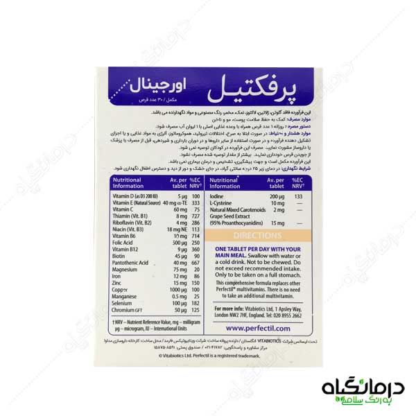 قرص پرفکتیل ویتابیوتیکس برای مو پوست و ناخن حاوی ریز مغذیهای لازم برای حفظ سلامت و شادابی پوست، مو و ناخنها می باشد.