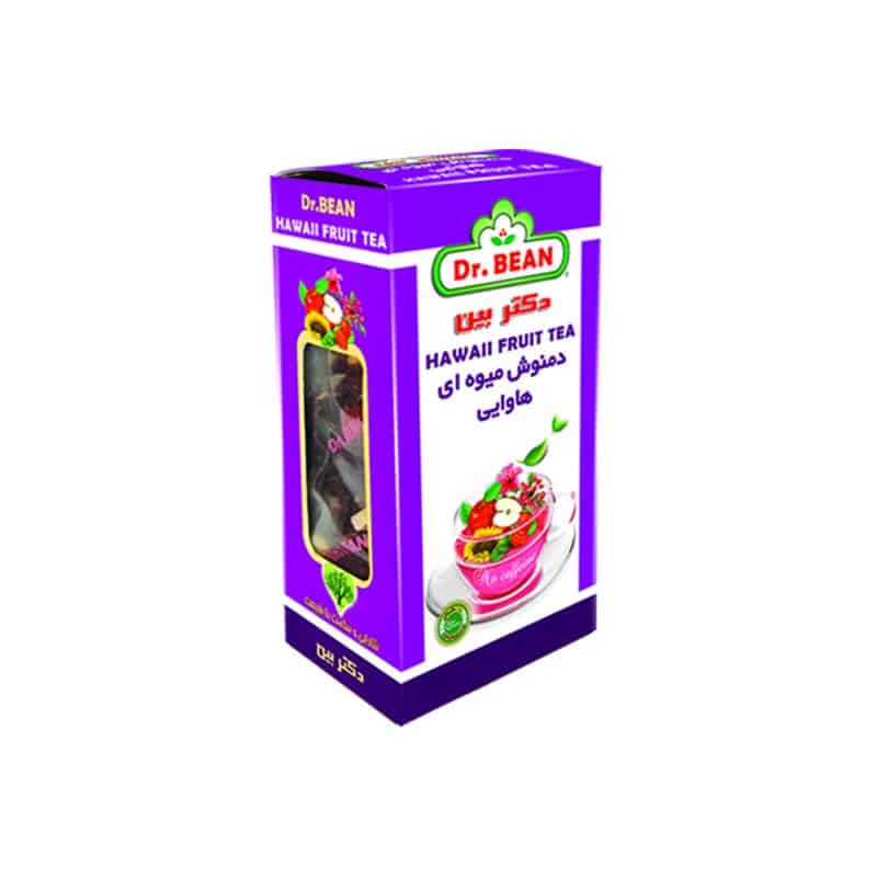 دمنوش میوه ای هاوایی دکتربین ترکیبی است از گیاهان و میوه های خشک طبیعی شامل سیب , چای ترش, رزهیپ,برگ توت فرنگی و گل آفتابگردان و طعم دهنده های طبیعی که سرشار از املاح و ویتامین های فراوانی از گروه Aو Cو آنتی اکسیدان بر اساس ذائقه مردم ایران تولید و بسته بندی شده است .