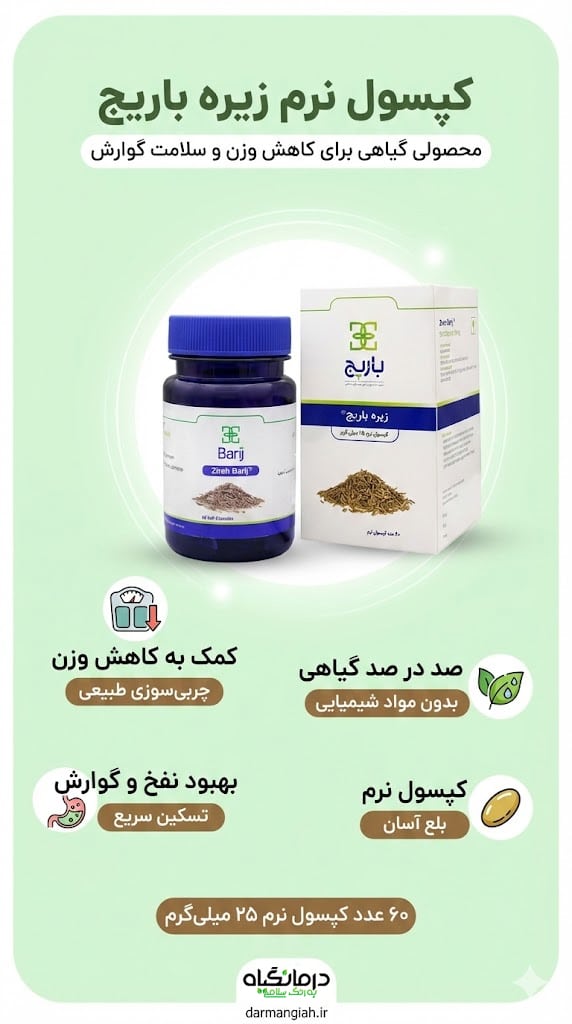 کپسول نرم زیره باریج یک ابزار کمکی قدرتمند، ایمن و ارزانقیمت برای تمام کسانی است که از چاقی ناشی از سردی مزاج، اشتهای زیاد و متابولیسم پایین رنج میبرند. اگر به دنبال یک تغییر سبک زندگی سالم هستید، این فرآورده گیاهی میتواند موتور چربیسوزی شما را روشن کند.