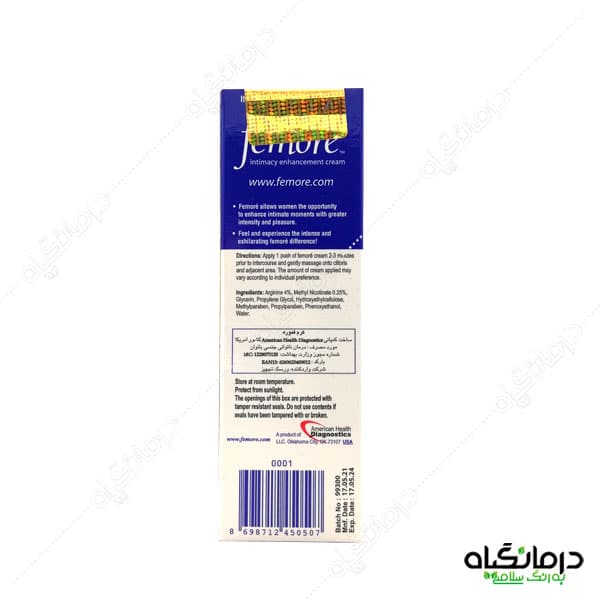 ژل فموره مخصوص بانوان که به طور گسترده ای میتوان از داروخانه های آنلاین، سوپرمارکتها بدون نسخه پزشک تهیه کرد.