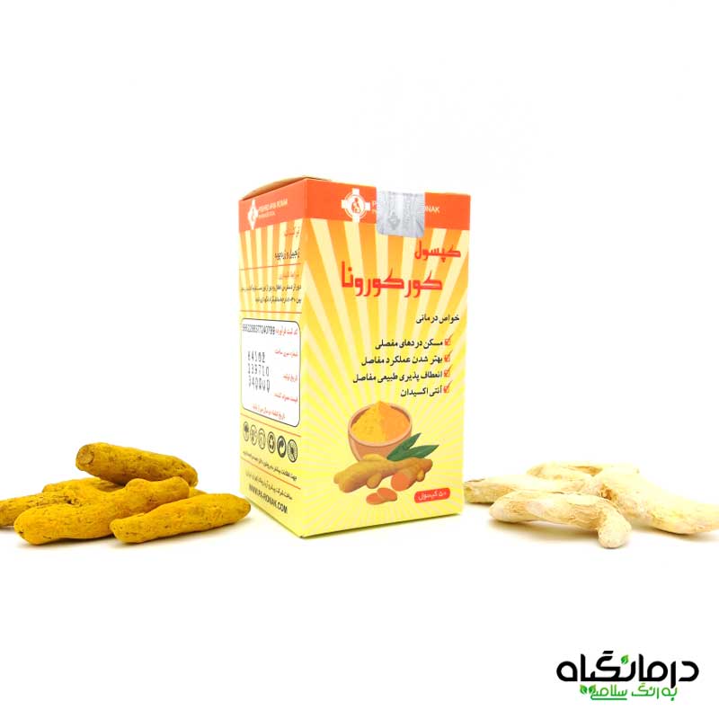 کپسول زنجبیل و زردچوبه کورکورنا محصول شرکت پیشرو آریا روناک یک داروی آرتروز گیاهی است.